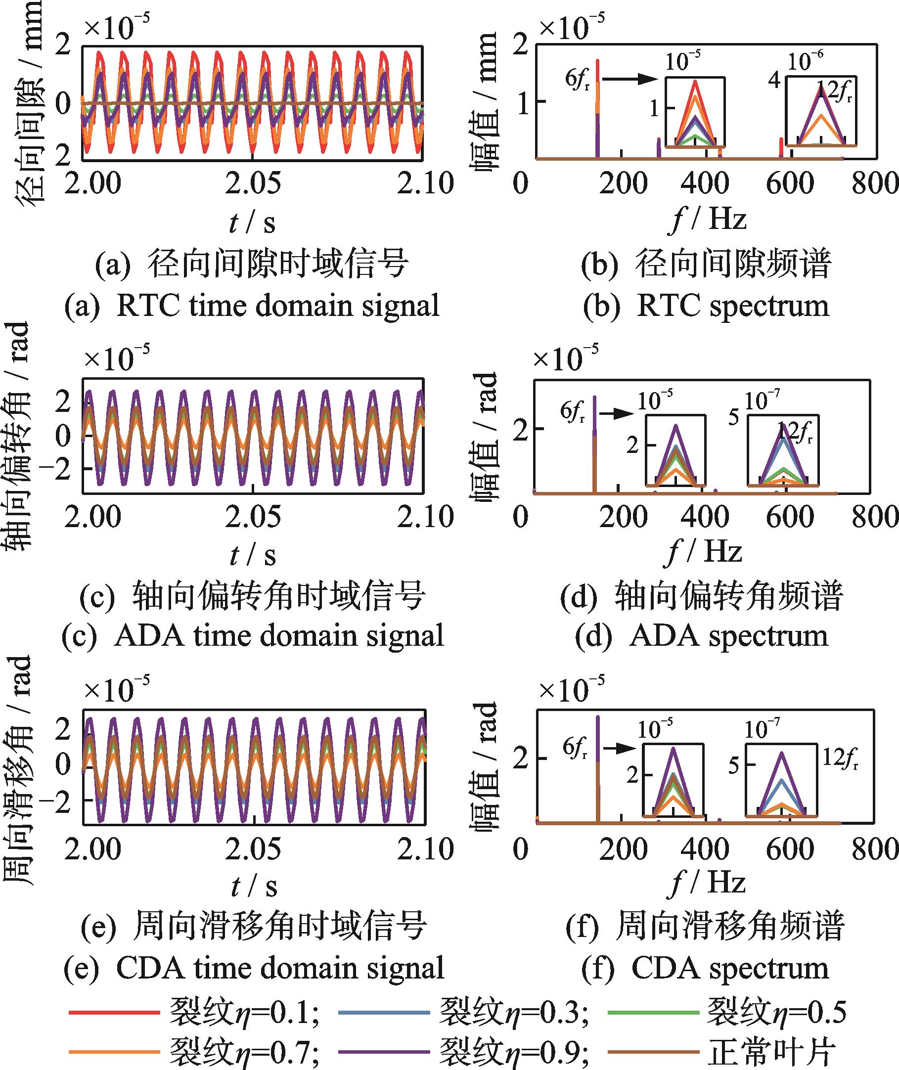 摘要:为了研究叶片裂纹故障机理,分析叶片裂纹对转子系统三维叶尖间隙的影响,并综合考虑叶片的径向变形、摆振方向和弦长方向的弯曲变形,基于连续梁理论建立了转子系统动力学模型。首先,基于三维应力状态的叶片呼吸裂纹模型,进一步建立了含叶片裂纹的转子系统三维叶尖间隙动态响应模型;其次,通过与有限元模型和实验结果进行对比,验证了动力学模型的准确性;最后,分析了叶片裂纹深度和位置对转子系统三维叶尖间隙的影响。结果表明,转子系统三维叶尖间隙高倍频分量的幅值随着叶片裂纹深度的增加而增加,三维叶尖间隙基频分量和高倍频分量的幅值均随着叶片相对裂纹位置增大而呈现非单调的变化趋势。该研究结果对基于三维叶尖间隙的航空发动机叶片裂纹监测诊断方法研究具有理论指导作用。