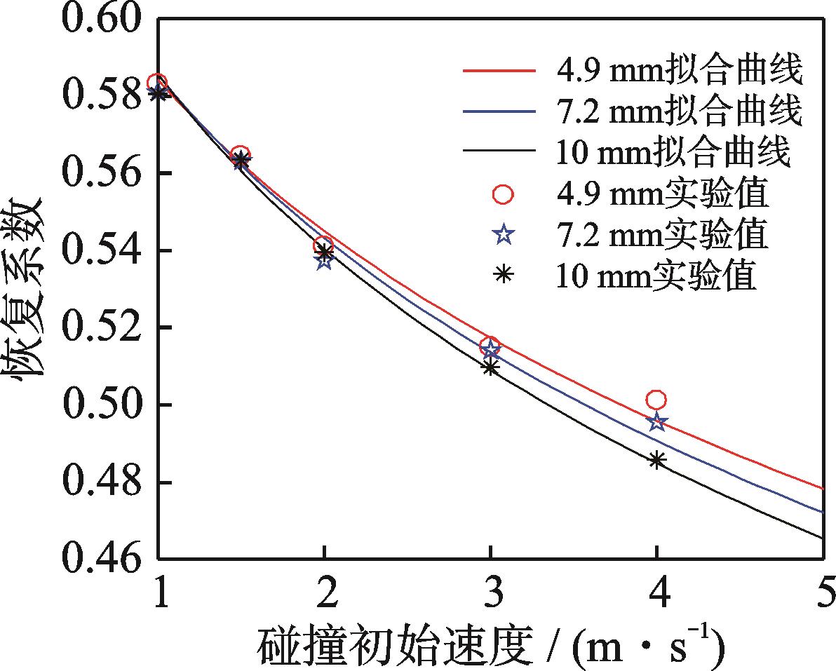 摘要:为进一步加强Hertz软球碰撞模型中刚性颗粒与弹塑性材料碰撞的相关研究,利用弹塑性半平面接触本构关系,引入一种新的阻尼形式,建立了硬球颗粒-聚氨酯平面的黏弹塑性碰撞模型,并推导出颗粒与弹塑性平面碰撞的非线性动力学方程。首先,通过测定球形煤精颗粒碰撞聚氨酯恢复系数实验,确定了所用聚氨酯材料的Meyer指数与动力学方程中的阻尼系数;其次,在方程中考虑不同的阻尼形式,对比证明了所提阻尼模型的正确性;然后,分析了不同阻尼系数下,不同阶段接触力的变化机理;最后,探讨了颗粒与弹塑性聚氨酯碰撞过程中位移、速度及接触力的变化规律。研究发现:随着初始碰撞速度的增加,聚氨酯不可恢复的塑性变形量由1.636×10-4 m增加至5.657×10-4 m,颗粒恢复系数由0.583 2降至0.501 2,碰撞时间由6.963×10-4 s降至4.737×10-4 s,塑性压缩阶段的占比由59.81%降至59.04%;所建立的模型可用于颗粒与较软平面碰撞的场景,为颗粒系统的输送、碰撞、冲击和分离提供了理论支撑。