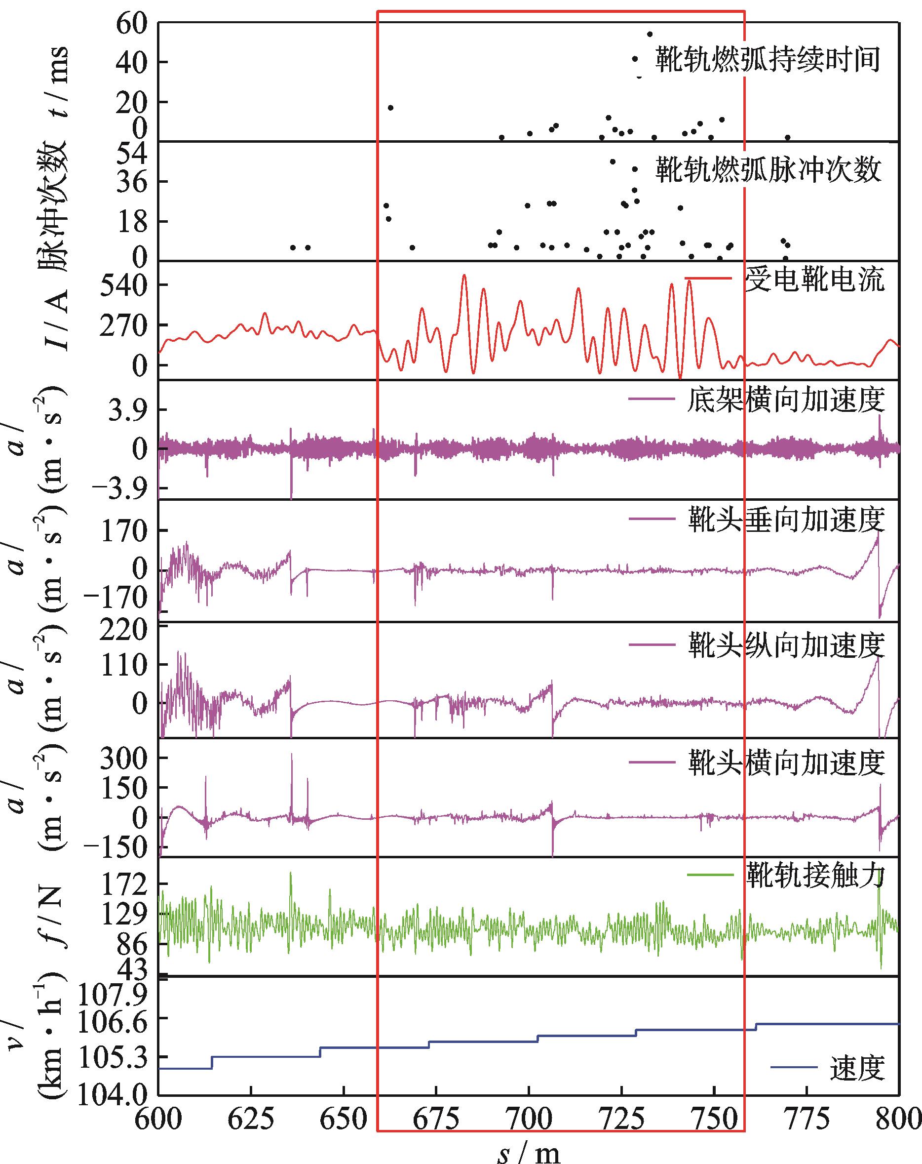 摘要:针对当前国内外磁浮列车靴轨系统检测指标较单一、缺少100~140 km/h速度范围检测数据等现状,提出了一个全面高速磁浮列车靴轨系统检测框架。首先,结合弓网和靴轨系统测试相关标准与规范,设计了包括靴轨接触力、振动加速度、受电靴电流、燃弧及靴轨横向几何参数的检测方法;其次,提出将视频监控、数据统计分析功能相结合的随车实时侧部靴轨监测系统,并开发了原始检测数据提取处理分析的配套程序;最后,以某中低速磁浮线为试验对象,对磁浮列车各速度等级测量的数据进行了分析。结果表明:磁浮列车上下运行弓网动态性能存在差异;膨胀接头处接触力、振动程度比中间段较大,靴轨动态性能较差;靴头振动主要来自垂向振动。相关研究揭示了磁浮列车靴轨系统在不同工况下的特性与问题,为磁浮列车靴轨系统的进一步优化提供了理论支持和实践依据。