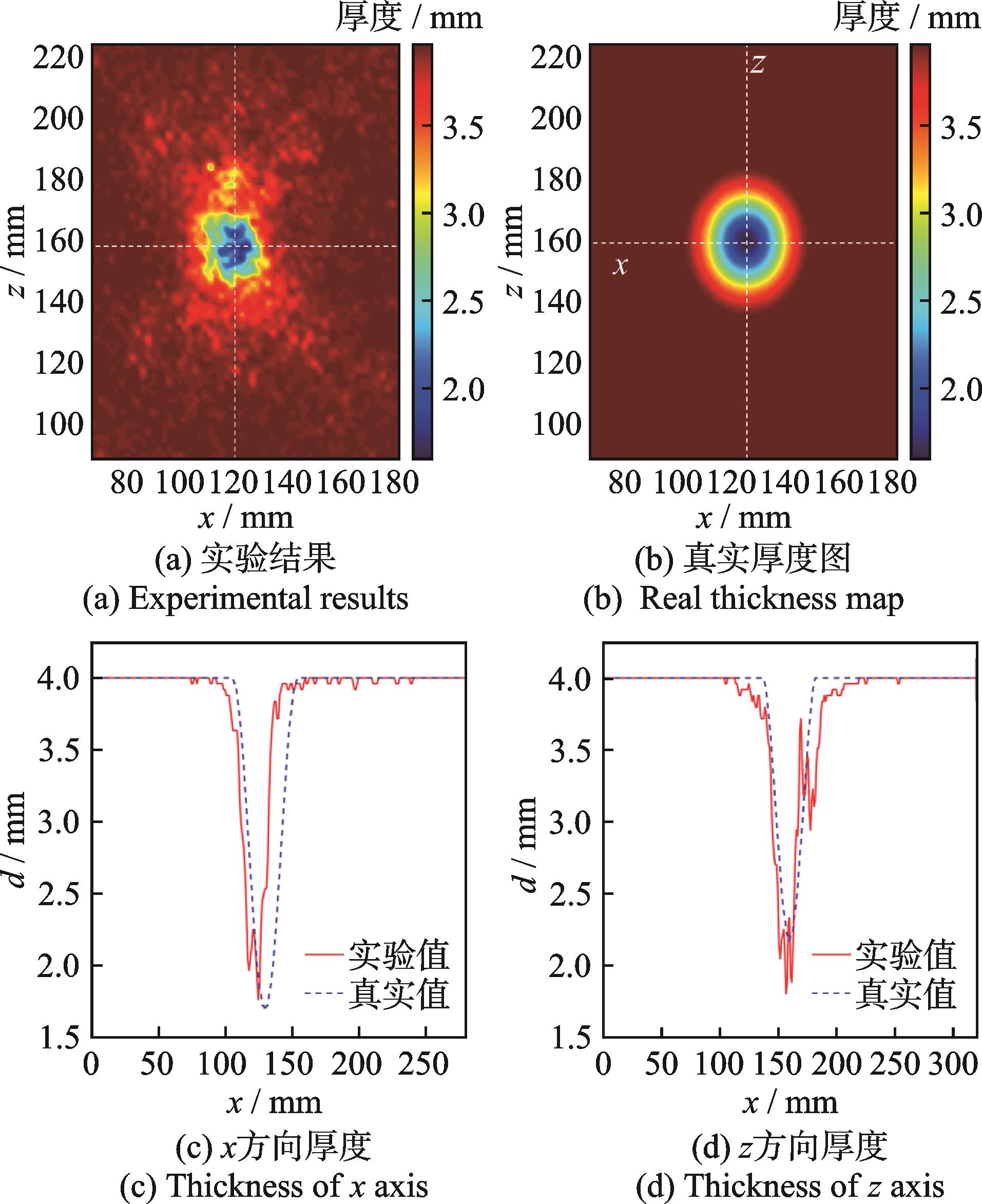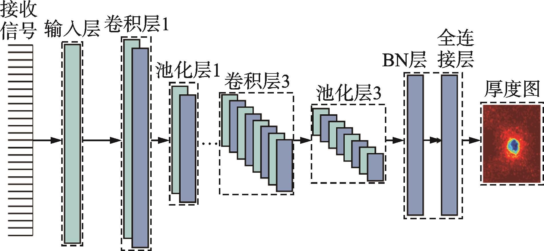 摘要:针对管道内腐蚀损伤厚度难以定量诊断的问题,提出了一种采用超声导波的管道腐蚀损伤定量成像方法。首先,基于频域有限差分法,建立了管中多路径螺旋传播导波的数值模型,可以在已知厚度图时快速计算出导波接收信号;其次,计算空间内存在随机损伤时的接收信号,重复运行数值模型生成了包含3 500组样本的损伤信号数据库;然后,构建了一维卷积神经网络成像模型,使用生成的数据库训练模型,建立了厚度图和接收信号的映射关系,将接收信号输入成像模型以输出对应的厚度图;最后,通过实验验证了该方法的可行性。实验成像结果与真实值之间的均方差为8.604 8×10-4,相关性系数为0.711 6,成像模型运行时间为0.538 5 s,这表明该方法可以实现管道中腐蚀损伤的厚度定量成像,且成像效率较高。