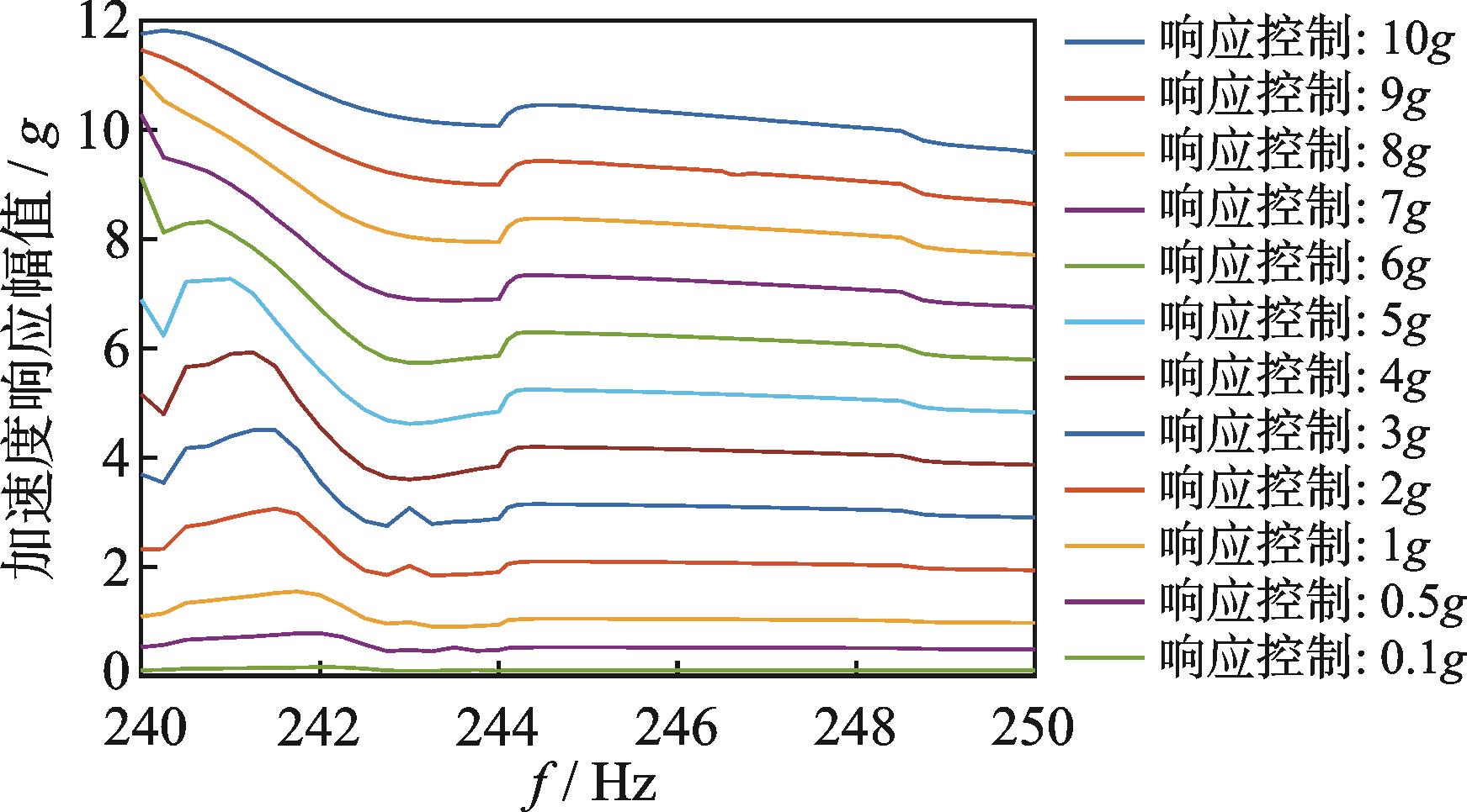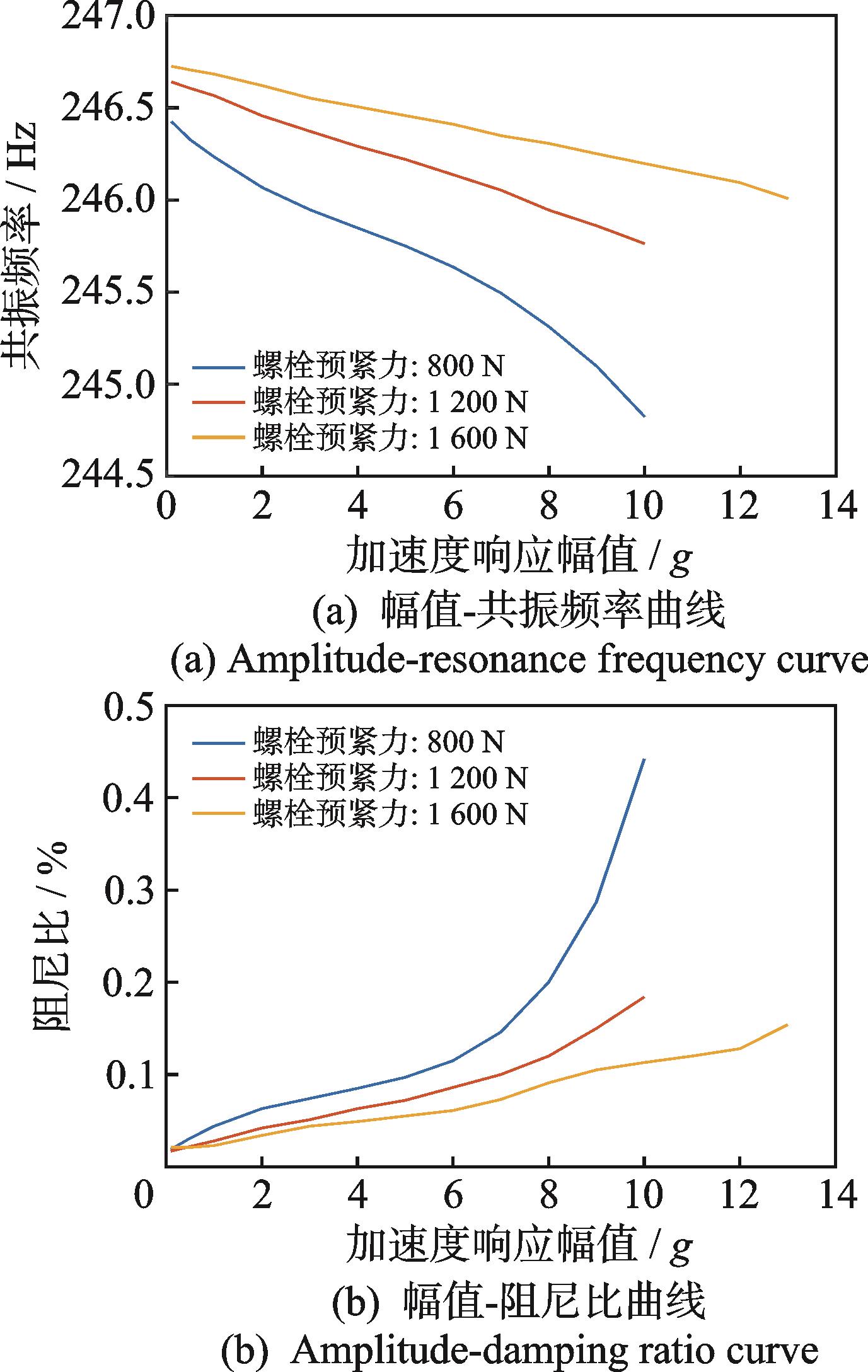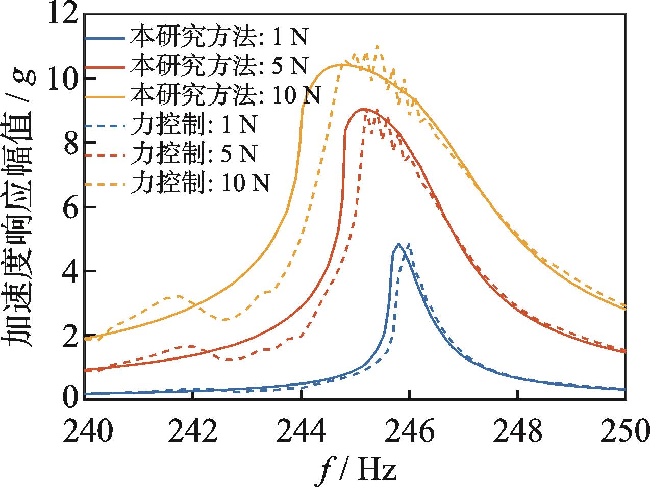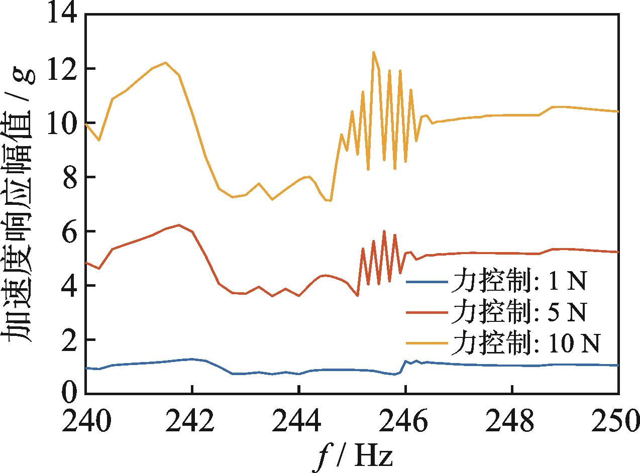 摘要:非线性结构在稳态激励下存在多重响应,采用传统振动实验方法很难直接获得非线性结构的动力学特性。针对此问题,提出了基于加速度响应控制步进正弦扫频实验技术的恒定力动力学特性测试方法。首先,选择激励点处的加速度响应作为控制信号,通过控制其响应幅度恒定进行步进正弦扫频实验;其次,根据不同加速度幅值工况实验获得简谐激励谱和简谐加速度响应谱曲线,并利用线性插值构造平滑的简谐力面;然后,通过从简谐力面中提取恒定力幅值的等值线,即为非线性结构恒定力幅值工况的频响曲线;最后,对典型螺栓连接非线性结构开展动力学特性研究。结果表明,采用本研究方法可以准确测试螺栓连接非线性结构的频响曲线,螺栓连接结构的动力学特性具有非线性的力依赖性,且螺栓预紧力大小和结构重装配对连接结构的动力学特性均有较明显的影响。