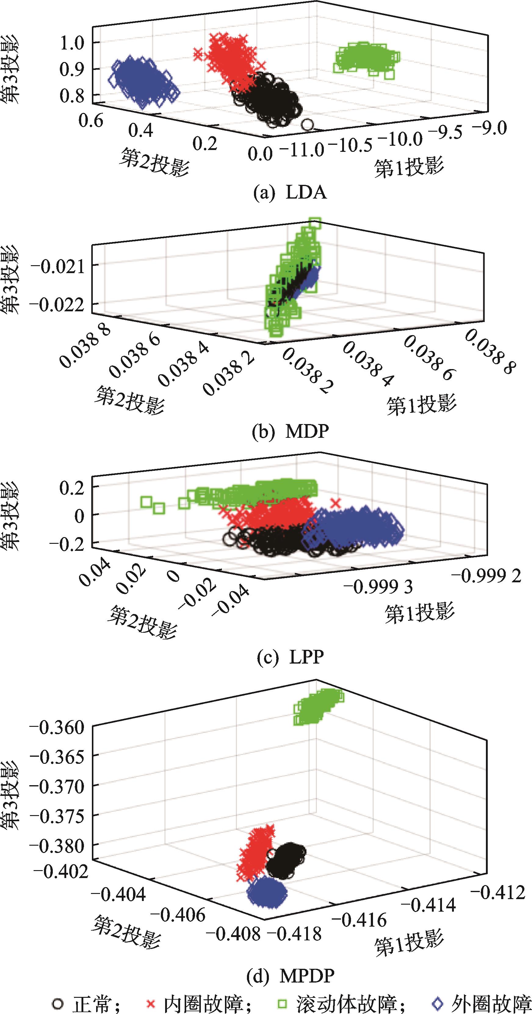 摘要:为监测分布式驱动电动汽车中轮毂电机运行状态,确保整车运行安全,提出一种基于改进的多类支持向量数据描述(multi-class support vector data description,简称MCSVDD)的轮毂电机故障诊断方法。首先,针对MCSVDD算法的改进,基于近邻传播(affinity propagation,简称AP)聚类算法提出了MCSVDD以“距离类内簇中心最小”的类别判断法则,并基于Weibull函数构造了Weibull核函数,用于优化数据描述模型;其次,针对轮毂电机运行状态的多维特征参数组,提出一种基于最小距离传播鉴别投影(minimum-distance propagation discriminant projection,简称MPDP)的降维法,提高了不同工况下轮毂电机故障状态的可分性;最后,定制带有典型轴承故障的轮毂电机,采集7种工况下的振动信号,验证所提出方法的有效性。结果表明:基于MPDP降维后的轮毂电机运行状态观测样本的可分性优于线性判别分析(linear discriminant analysis,简称LDA)、局部保持投影(locality preserving projection,简称LPP)及最小距离鉴别投影(minimum-distance discriminant projection,简称MDP)方法,基于Weibull核函数的MCSVDD状态识别系统的识别精度整体高于基于多项式和高斯核函数的MCSVDD系统。