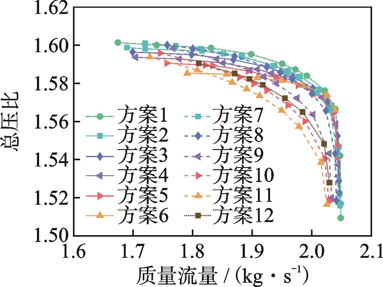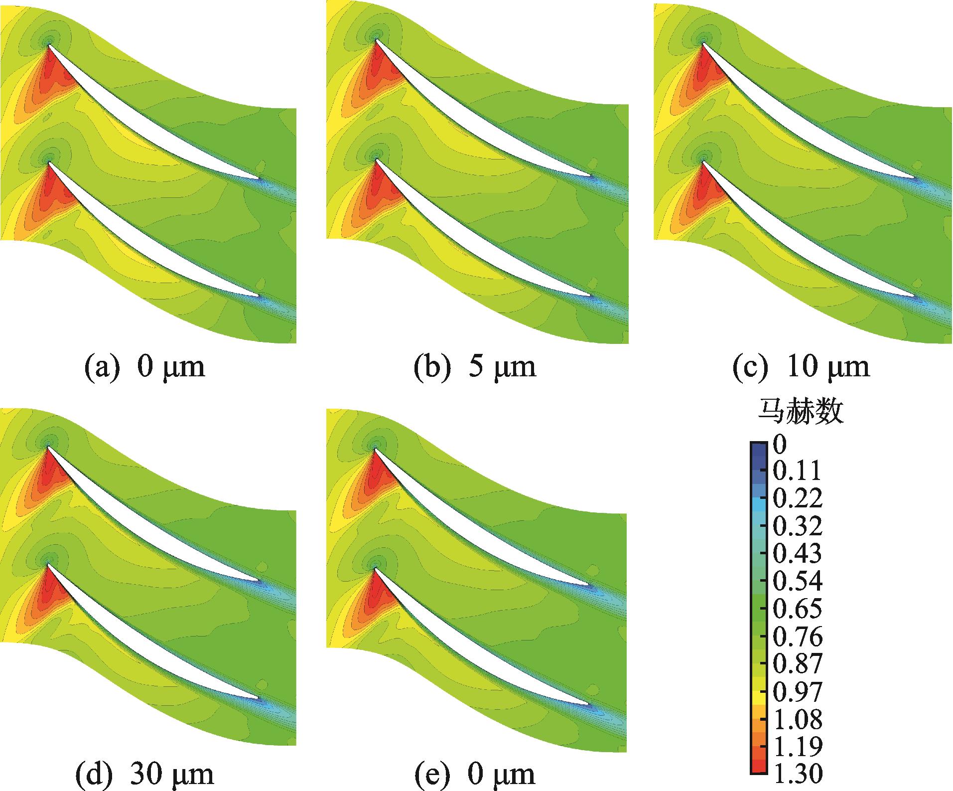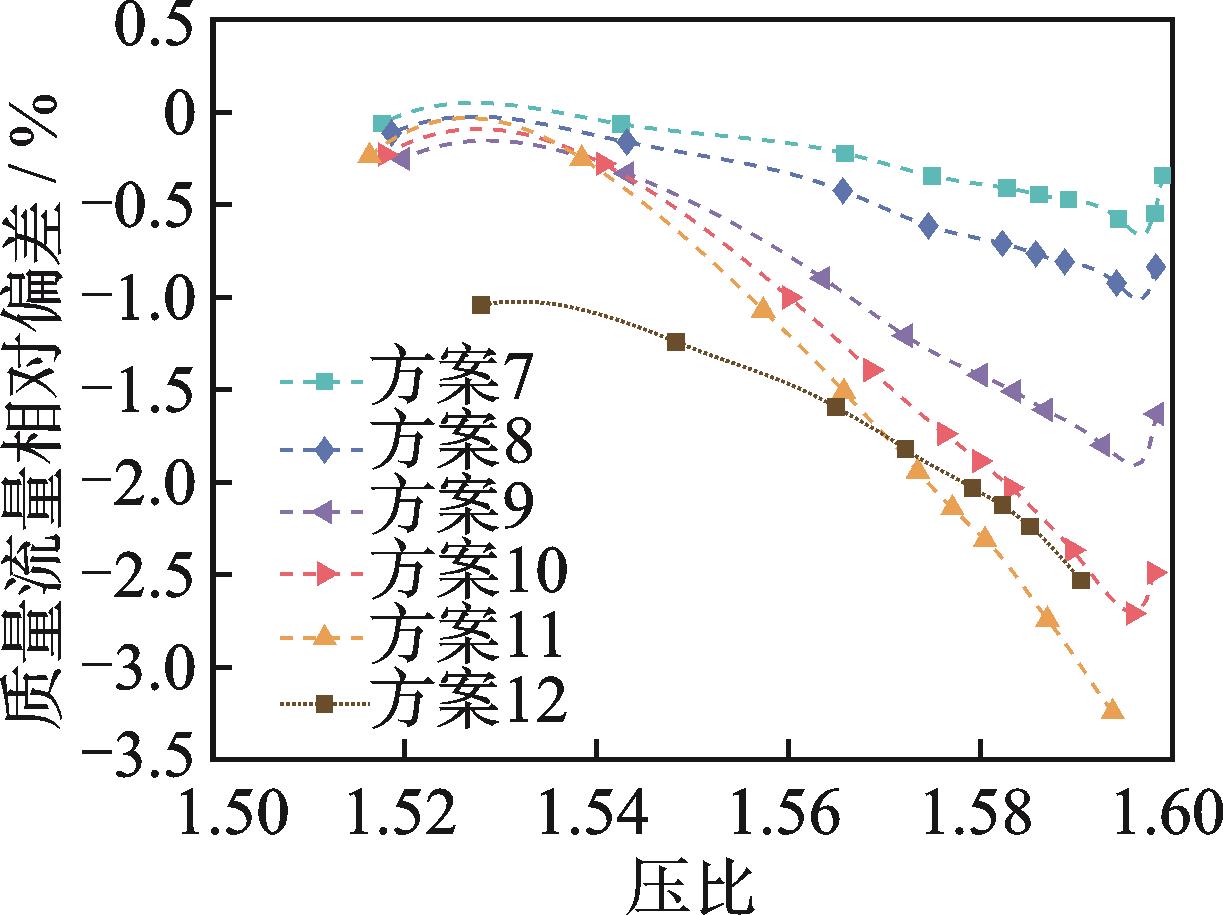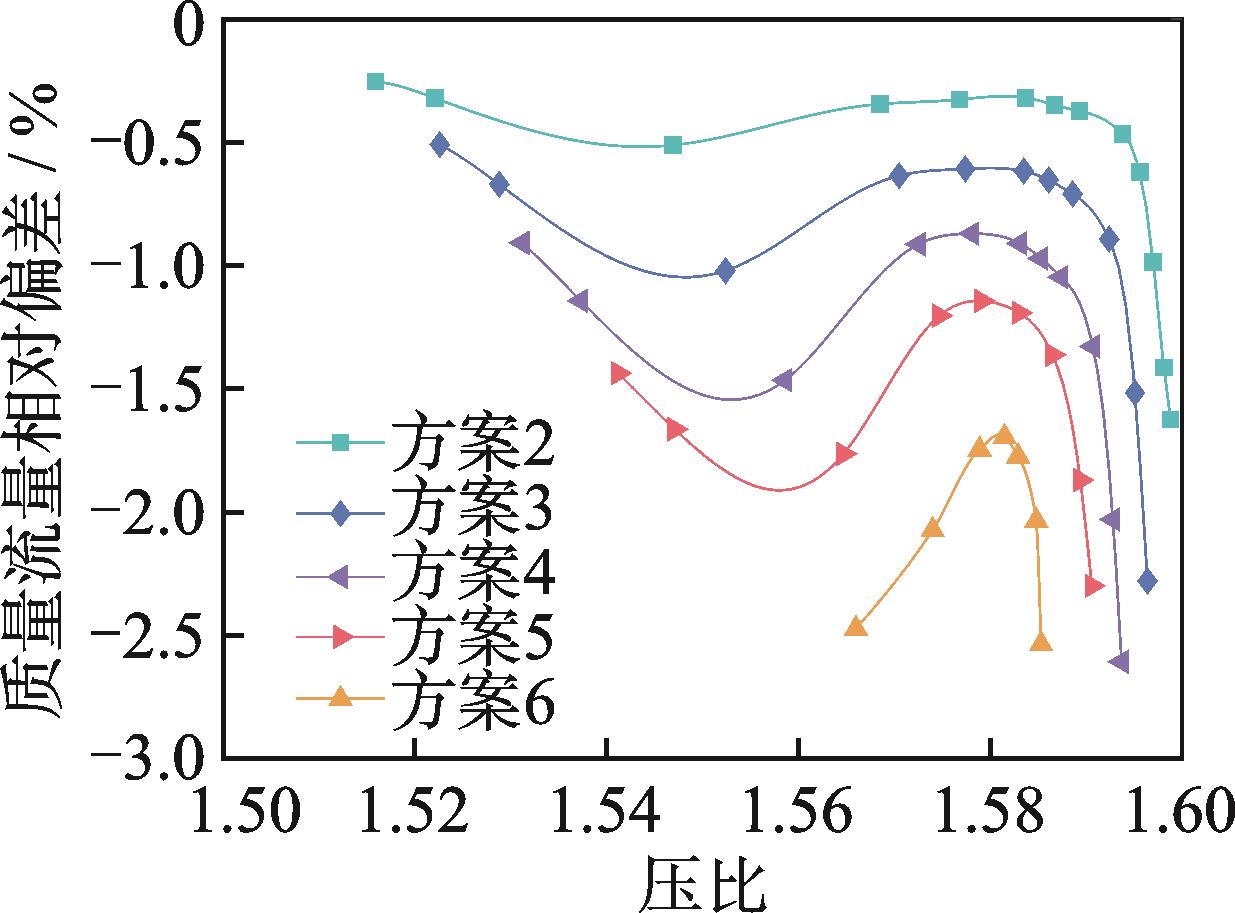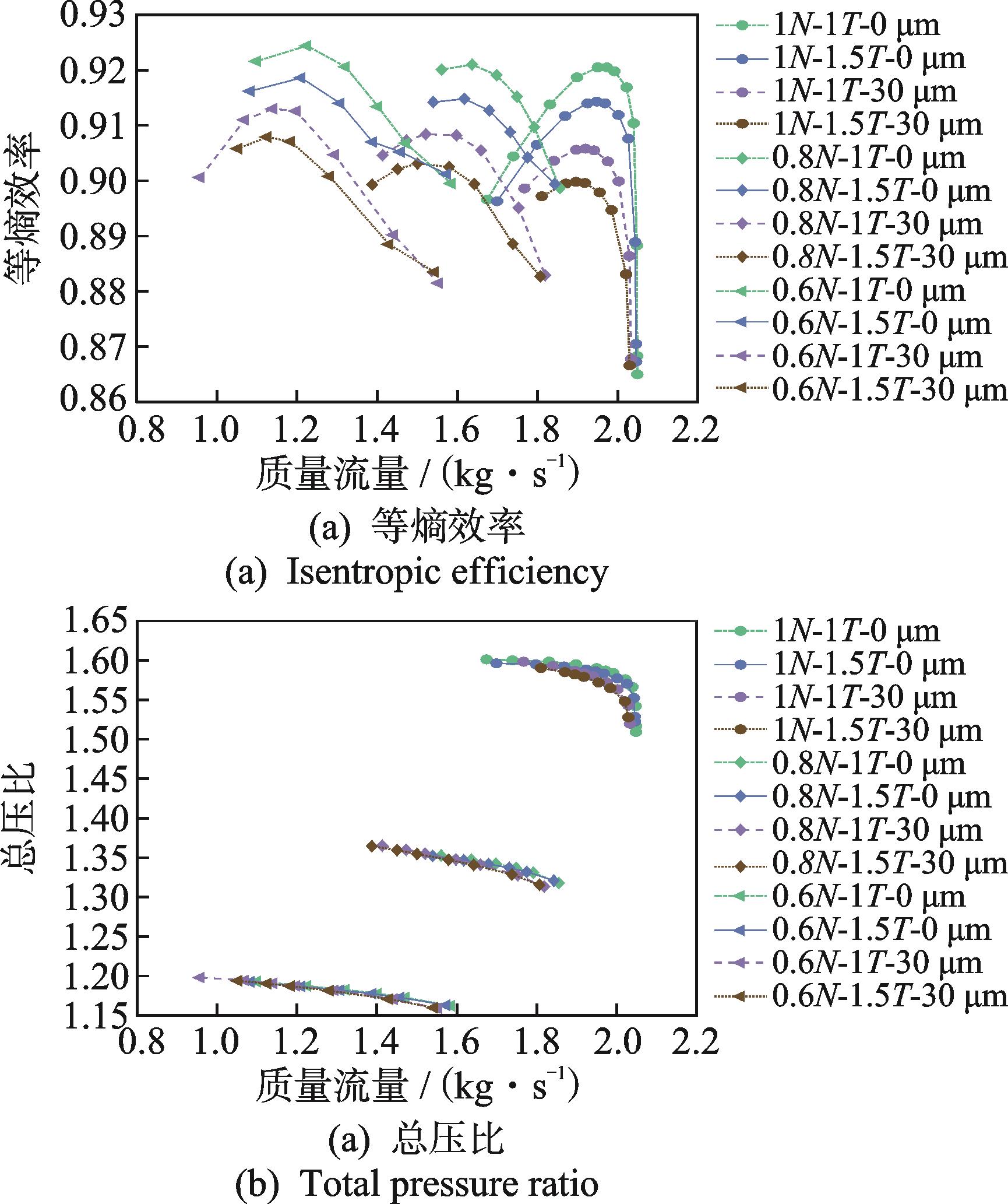 摘要:针对压气机故障诊断中机理不清晰的问题,为了揭示叶片磨损后压气机部件特性偏差的变化规律,通过数值仿真分析方法研究了叶片在不同磨损程度下的部件特性变化规律。结果表明:叶片表面磨损相比于叶尖磨损引起的压气机性能衰退程度更明显,且转速越高,性能衰退的程度越大;叶尖间隙增大导致的效率衰退值随着压比增大呈现出先减小后增大的规律,其中在压气机的工作线附近,效率的衰退值随压比变化较为稳定,而流量衰退值随压比的增大而增大;叶片表面粗糙度增大后效率和流量的衰退值都随压比的增大而增大,在接近失速的压比下衰退值有减小的趋势;在工作线附近,不同程度的叶片磨损对流量的影响大于对效率的影响。该结果可为航空发动机气路故障诊断方法的研究提供理论参考。