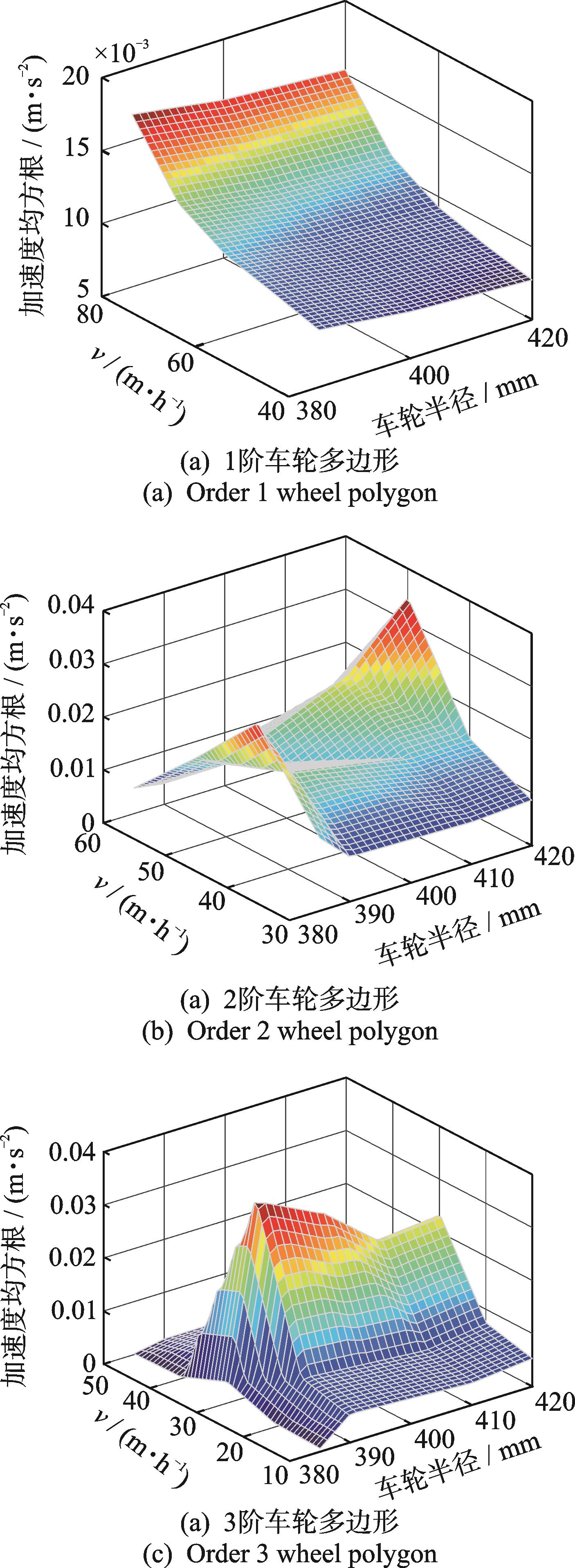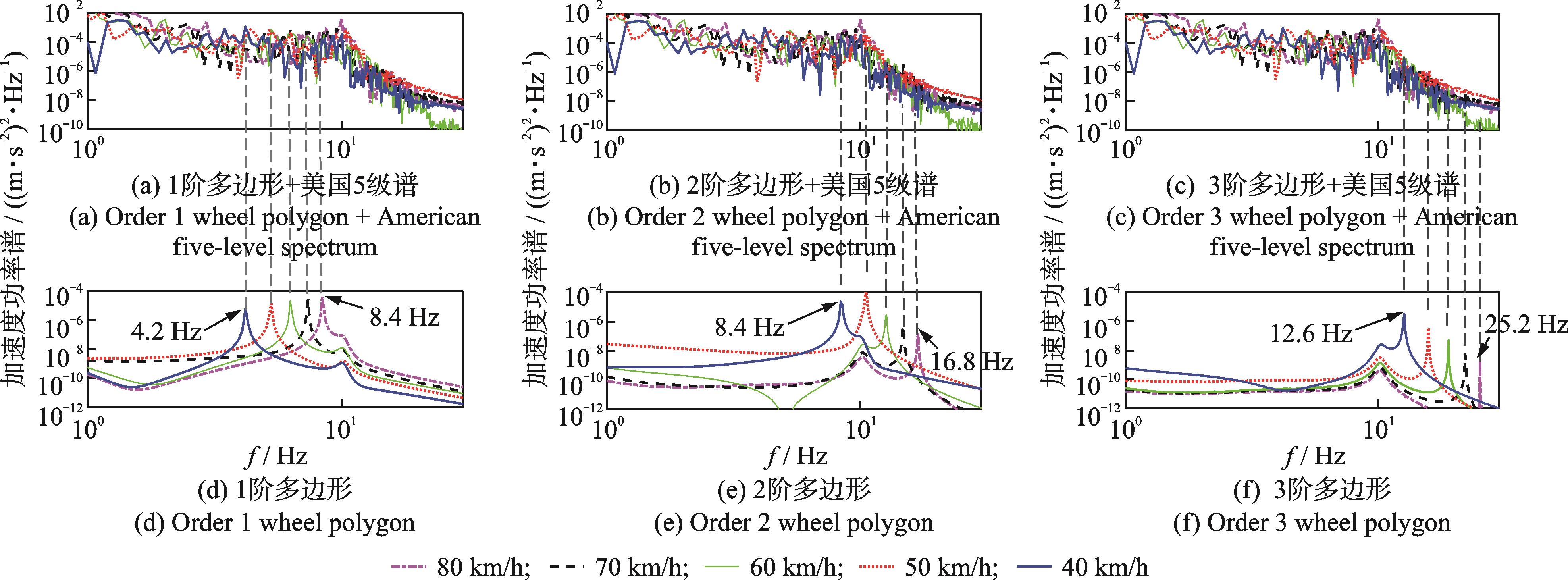 摘要:为了研究地铁车轮多边形对车体低频振动的影响,首先,调研了某地铁线路车轮多边形磨耗情况,在掌握地铁线路车轮多边形分布特征的基础之上,建立了考虑车轮多边形的弹性车体垂向动力学模型;其次,基于时域积分求解方法,研究了车轮多边形激励频率与车体低频振动的关系;最后,通过对比不同阶次的车轮多边形对车体低频振动的结果,讨论了服役条件下地铁车辆运行速度及车轮磨耗半径的变化对车轮多边形作用车体的影响规律。结果表明:1~3阶次的车轮多边形产生0~20 Hz的低频激励频率,当激励频率接近于车体1阶垂弯频率10.2 Hz时会产生共振,致使车体加速度响应增大;服役初期2阶车轮多边形对车体低频振动影响最大;随着服役过程中车轮半径的磨损,前3阶车轮多边形影响车体振动规律均发生改变。