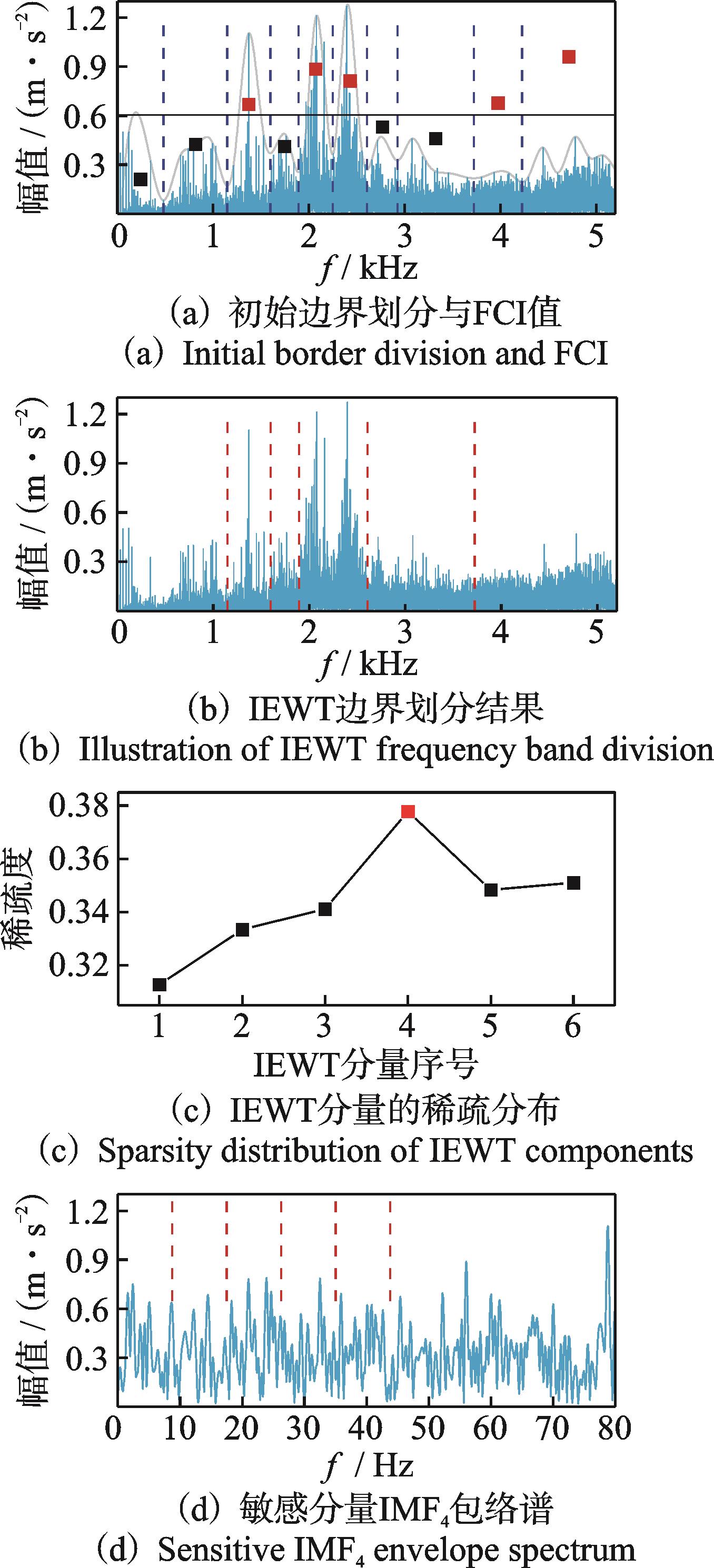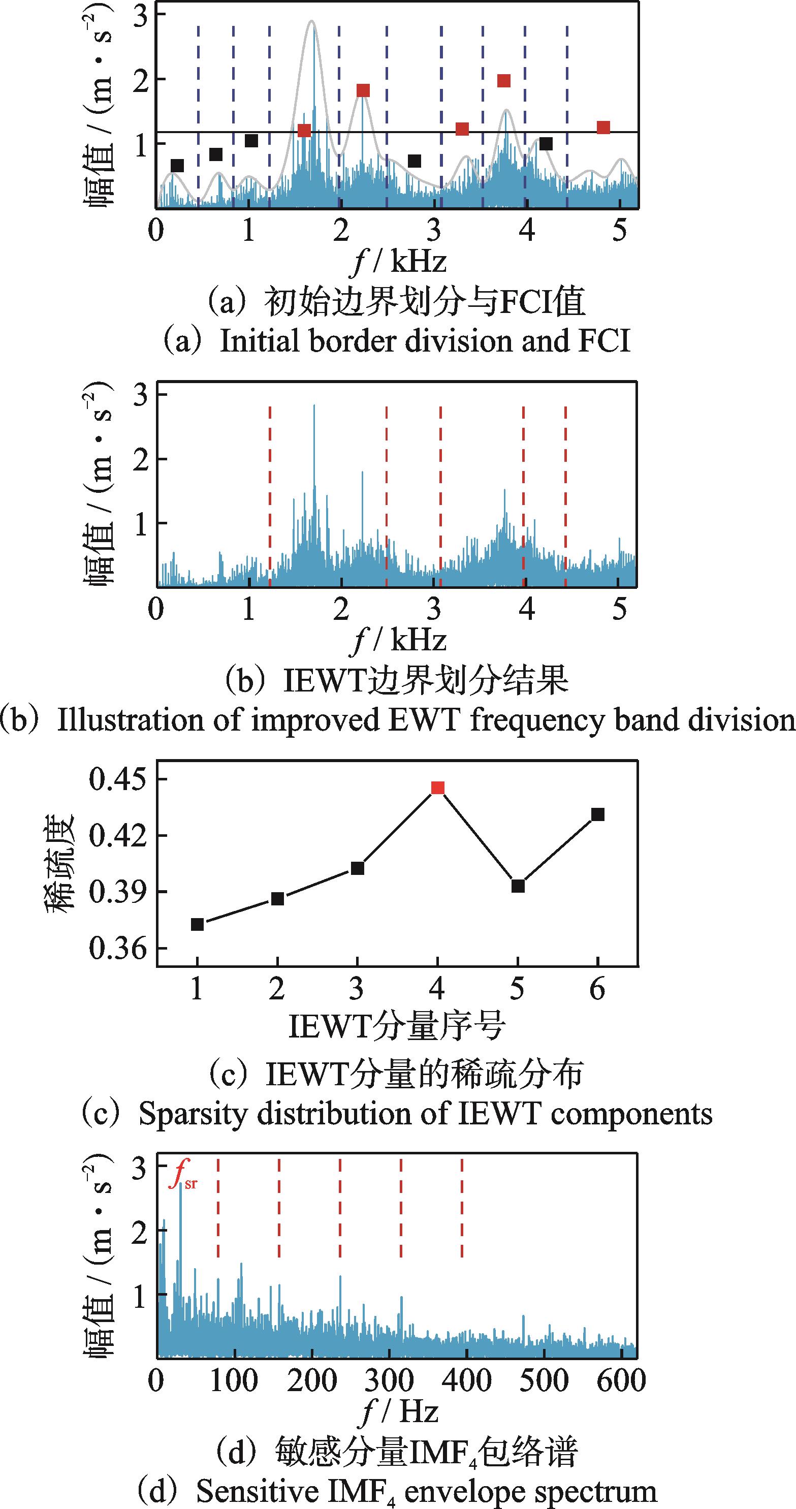 摘要:行星齿轮箱出现早期故障时,由于工业环境的背景噪声干扰和故障冲击在复杂传递路径中衰减,其微弱故障特征难以有效提取和识别。针对此问题,提出了稀疏引导的改进经验小波变换(improved empirical wavelet transform,简称IEWT)结合多点最优最小熵解卷积(multipoint optimal minimum entropy deconvolution adjusted,简称MOMEDA)的微弱故障特征提取方法。首先,提出了一种新的故障综合指标(fault composite index,简称FCI),结合信号频谱的幅值包络线将原始信号自适应分解为一组IEWT分量;其次,通过稀疏引导方法选出敏感分量作为原始微弱故障信号的稀疏表示;最后,对敏感分量信号进行MOMEDA处理,降低信号噪声并提取微弱信号故障特征频率用于检测。仿真和实验结果表明,所提方法对含有噪声的非平稳非线性行星齿轮箱故障信号有良好的诊断效果,验证了该方法的有效性,为工程实践中行星齿轮箱弱故障的诊断和检测提供了一种方法。