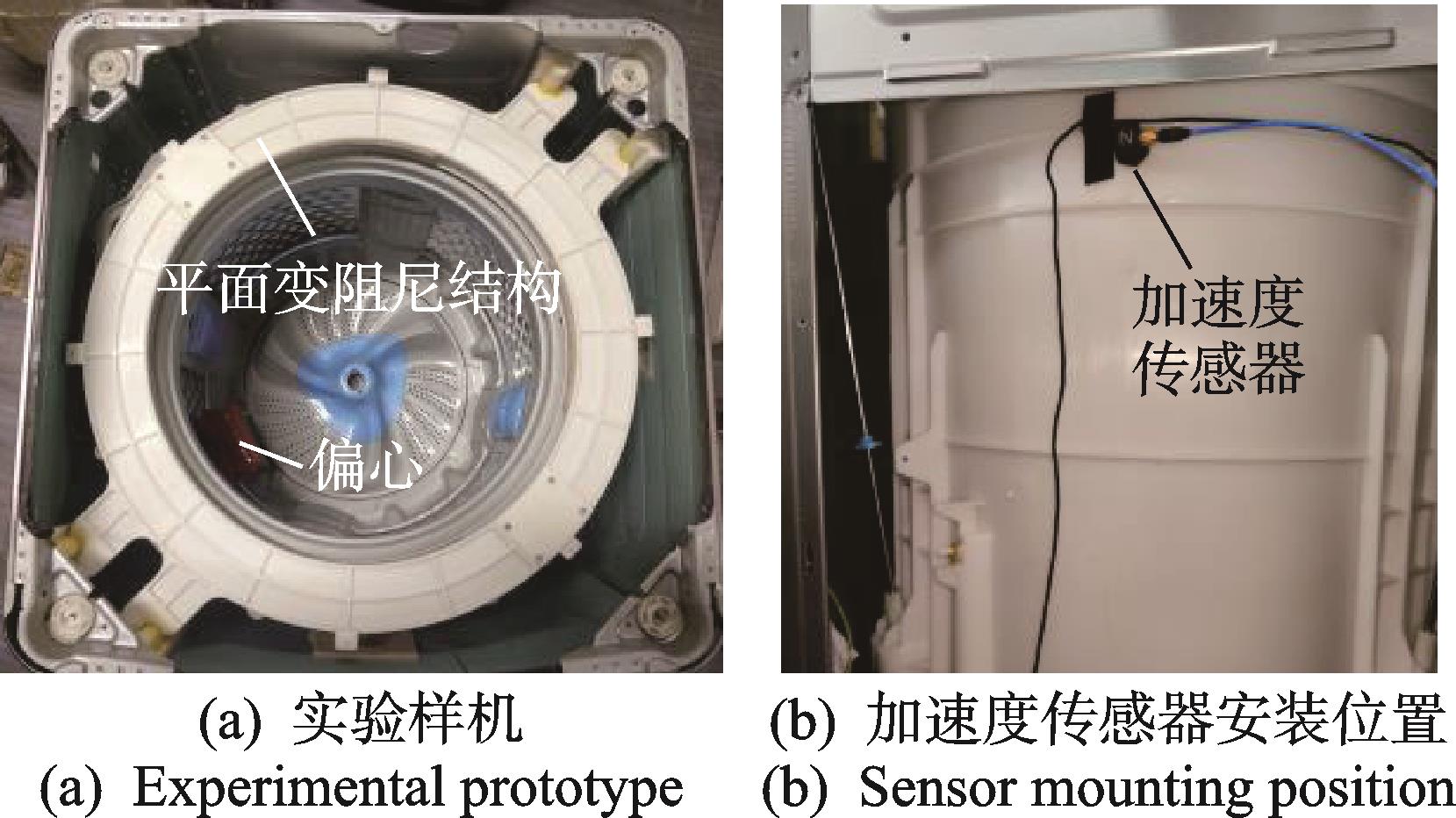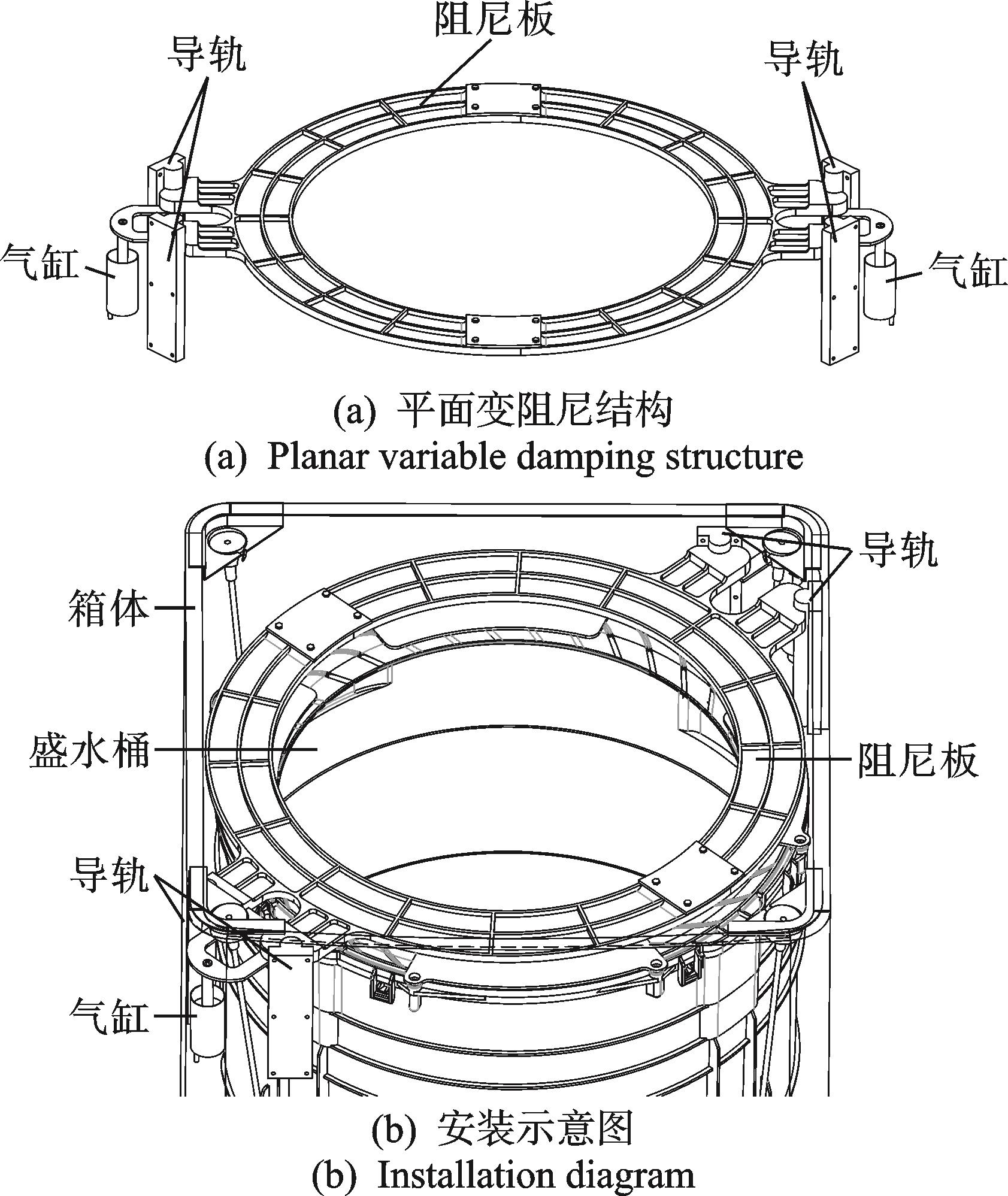 摘要:为了抑制波轮洗衣机脱水启动阶段的剧烈瞬态振动,提出了一种新型平面变阻尼结构。首先,推导了波轮洗衣机各类刚体的动能、势能和悬挂系统的广义力,分析了液体平衡环作用力,并运用拉格朗日方程建立了波轮洗衣机整机振动模型;其次,阐述了平面变阻尼结构的原理及其广义力,验证了其对波轮洗衣机瞬态振动的抑制作用;然后,为评估平面阻尼结构对波轮洗衣机固有特性的改变,运用分岔理论分析了其对系统稳定性的影响,得到了系统参数稳定区分布情况以及平面变阻尼结构合适的转速脱离区间;最后,搭建了实验样机平台,验证了瞬态减振效果,并确定了脱离转速。结果表明,平面变阻尼结构可显著抑制波轮洗衣机瞬态振动,且对整机其他动态特性的影响很小。