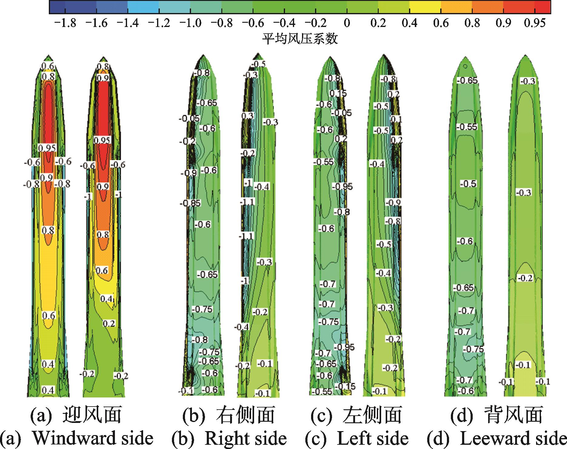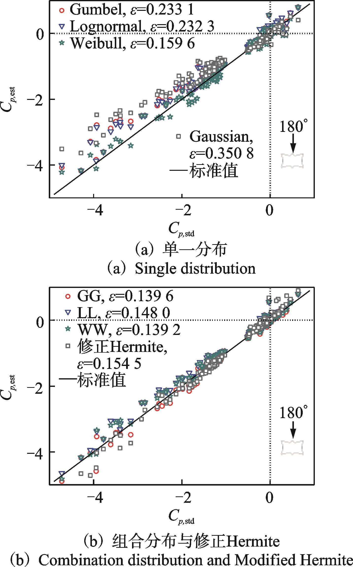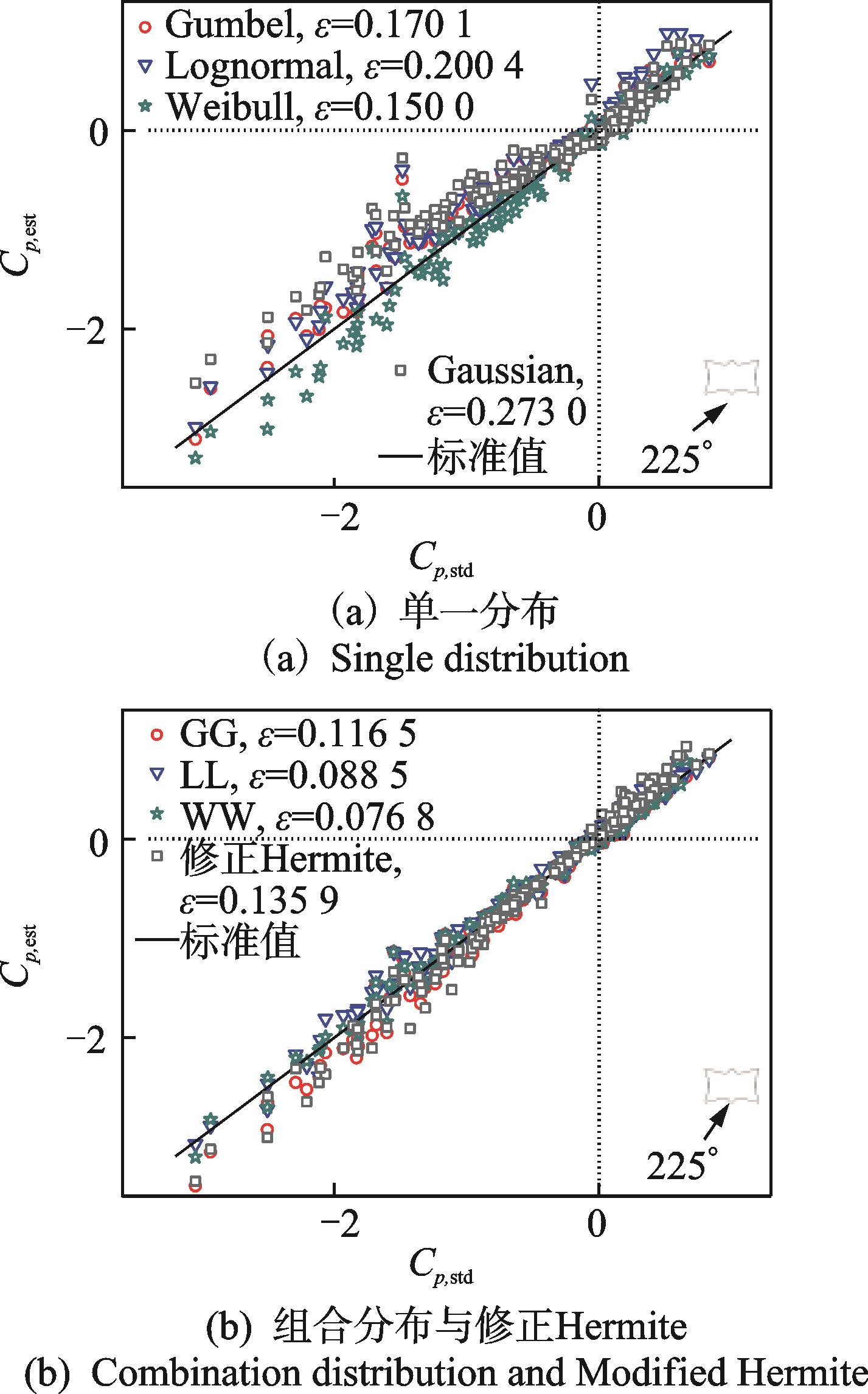 摘要:为了研究大跨屋盖表面风压非高斯特性及极值风压分布,对某高铁站房屋盖进行了风洞测压试验。首先,对表面风压进行高斯分布和非高斯分布的划分;其次,对比3种不同单一概率分布(Gumbel、Lognormal和Weibull)及其对应的组合分布(双Gumbel、双Lognormal和双Weibull)对屋盖表面风压时程的拟合效果,并比较了组合概率分布获取的极值风压与修正Hermite法的估计结果;最后,给出全风向角下屋盖极值风压分布。结果表明:组合概率分布对风压时程的拟合效果优于单一分布,组合分布在同一保证率下的极值估计结果好于单一分布;组合分布在99.90%保证率下的估计效果总体上优于修正Hermite法;极值风压随风向角变化显著,在全风向角下极小值风压系数在屋盖边缘侧中部最小,可达到-5.9。