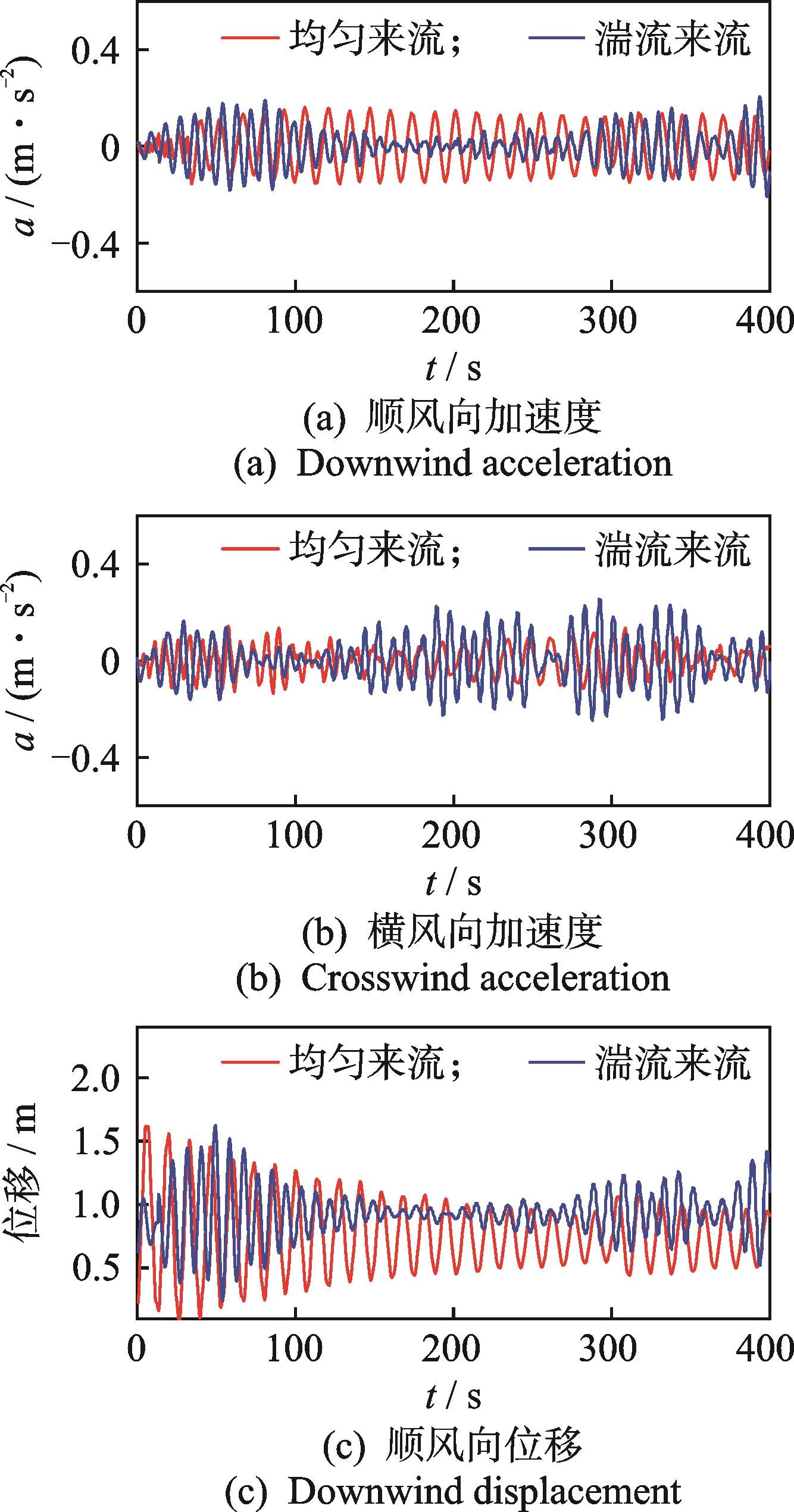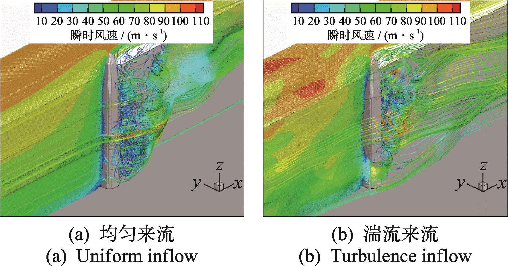 摘要:为了研究在流固耦合效应下不同来流对超高层建筑风效应特性的影响,采用分离涡方法(detached eddy simulation,简称DES)对深圳平安金融大厦气弹模型进行全尺寸数值风洞模拟,利用湍流脉动生成(discretizing and synthesizing random flow field generation,简称 DSRFG)方法模拟大气边界层湍流和均匀来流,得到模型的风压和风致响应结果,并与风洞试验和现场实测数据进行对比。研究结果表明:分离涡模拟得到的湍流来流下建筑风压与风洞试验和现场实测结果分布趋势一致;2种工况下建筑平均风压系数分布相似,湍流来流下迎风面脉动风压系数大于均匀来流;横风向加速度响应湍流来流大于均匀来流,均匀来流下加速度响应功率谱表现出三峰,位移响应功率谱表现出双峰,湍流来流下表现出单峰;在流场方面,均匀来流风速较湍流来流更加均匀,尾流涡旋更加扁平狭长,整体涡量较小。