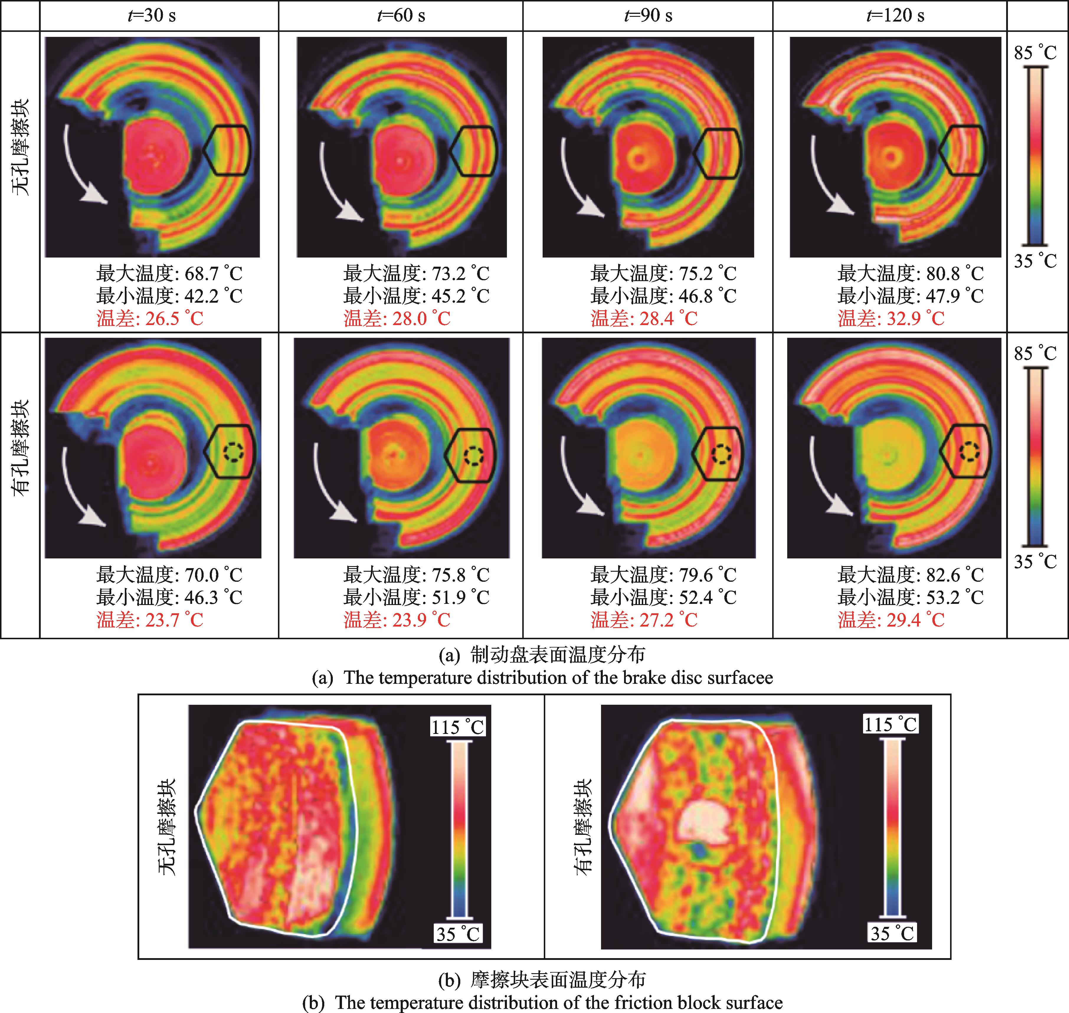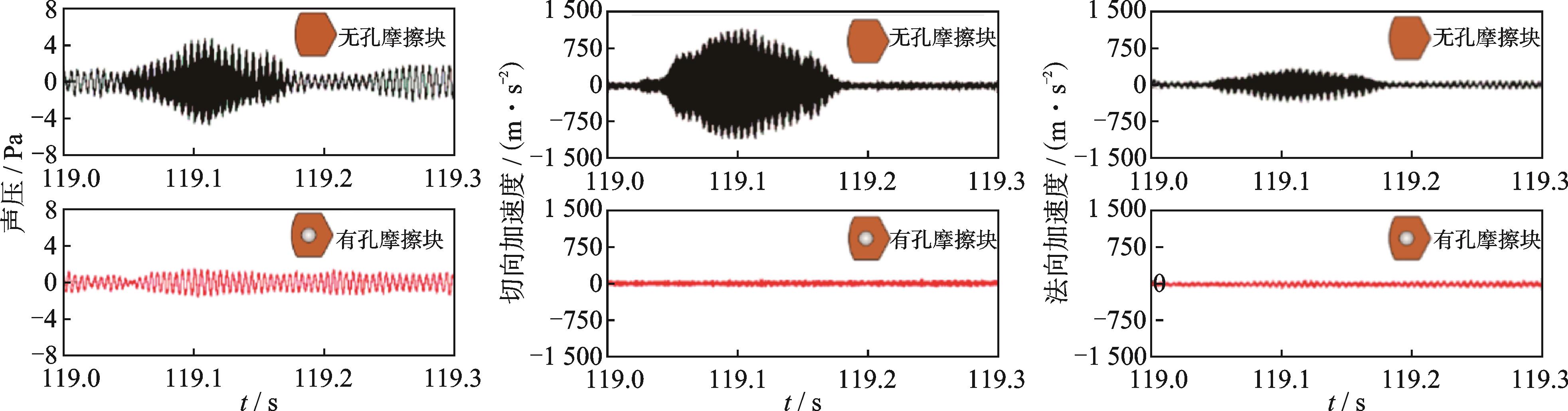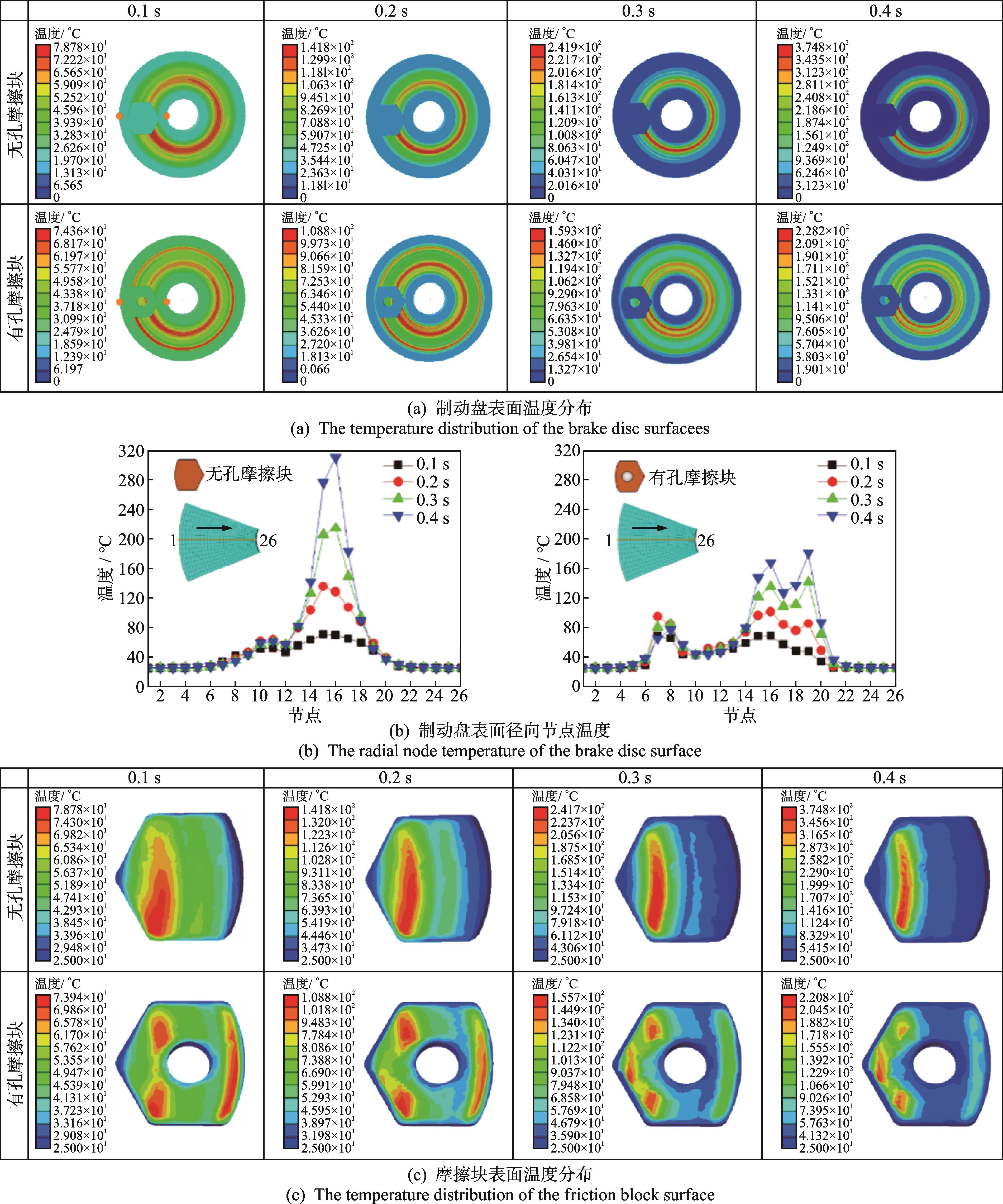 摘要:高速列车制动闸片的摩擦块有开孔和不开孔两种形式,为研究摩擦块开孔结构对高速列车制动特性的影响,在自行研制的高速列车制动缩比试验台上,对有孔结构和无孔结构的摩擦块进行制动拖曳试验,并采用有限元方法对试验过程的振动噪声及界面热分布进行数值模拟。试验及数值分析结果表明:无孔摩擦块的制动系统会产生连续自激振动并激发出高强度尖叫噪声,而有孔摩擦块在一定程度上抑制了系统的不稳定振动和尖叫噪声的产生;相比于无孔摩擦块,有孔摩擦块可以改善界面热分布,其表面及与其配副的制动盘表面的温度都更为均匀。