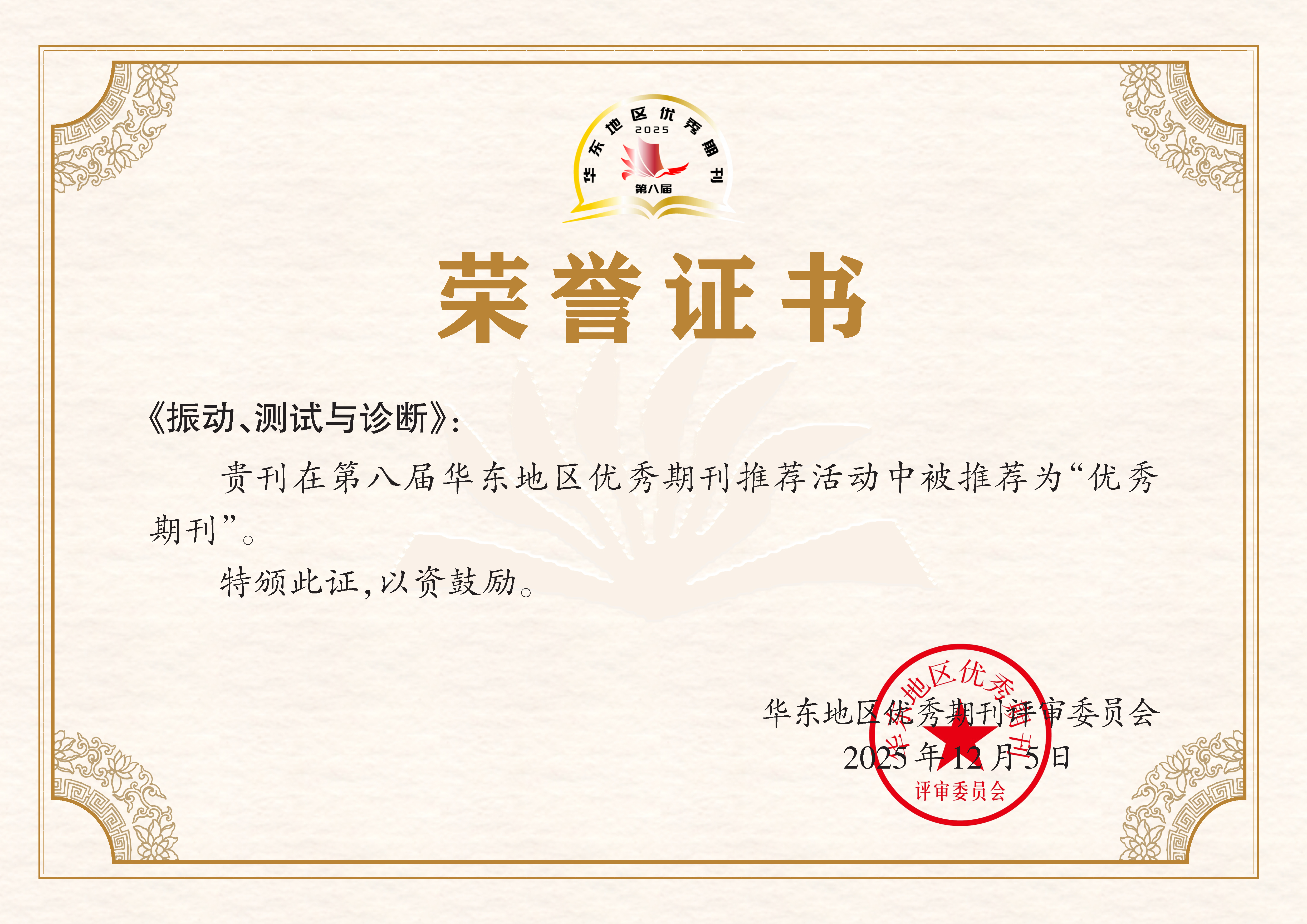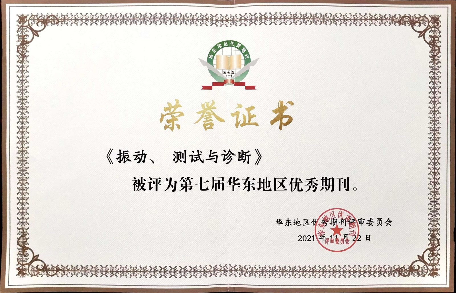 近日,由华东地区六省一市(上海、浙江、福建、江西、江苏、山东、安徽)期刊协会联盟组织评选的“第八届华东地区优秀期刊”结果正式公布。经各省(市)期刊协会初审推荐、华东地区优秀期刊评审委员会终审评定,共评选出“优秀期刊”378种,江苏省共有92种期刊入选,《振动、测试与诊断》位列其中。