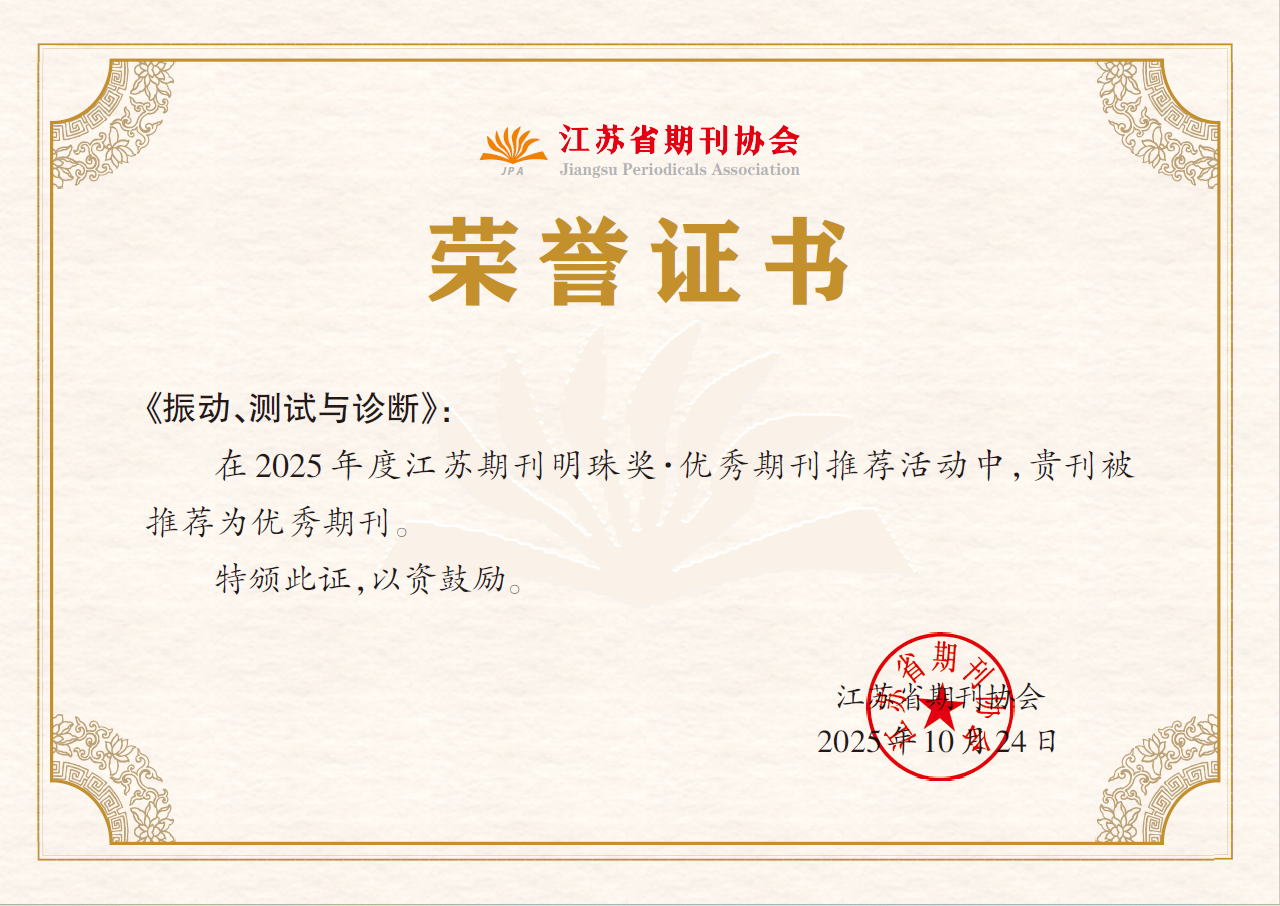 《振动、测试与诊断》入选2025年度江苏期刊明珠奖·优秀期刊